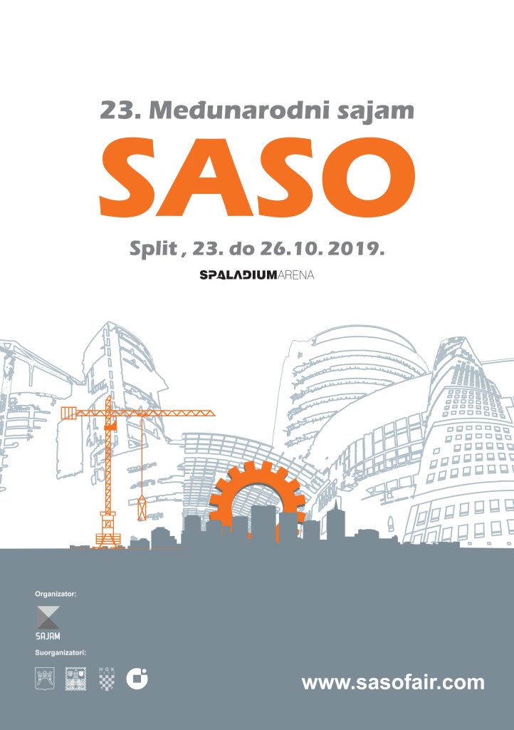 Obavještavamo Vas da će se 23. Međunarodni sajam SASO 2019 održati u razdoblju od 23.-26.10.2019. godine u Spaladium areni, u Splitu.