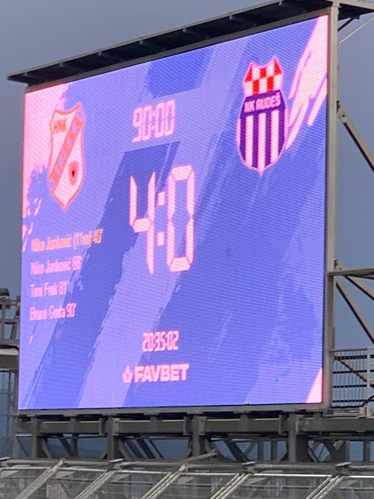 HNK Rijeka je na Rujevici pred 5.000 gledatelja pobijedila novog prvoligaša Rudeš sa 4-0. Golove su zabili Niko Janković (40-11m, 68), Toni Fruk (81) i Bruno Goda (89).