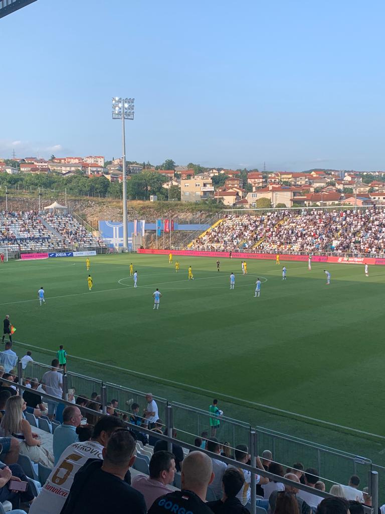 Nastavno na projekt “Zajedno” kojim je započela suradnja između NK Rijeka i Udruženja obrtnika Rijeka, predstavnici Udruženja obrtnika Rijeka prisustvovali su 22.7.2023. susretu prvog kola SuperSport HNL-a na Rujevici. Na fotografiji: predsjednik UO Rijeka Ivica Zbašnik i član Skupštine UO Rijeka Danijel Celcner.