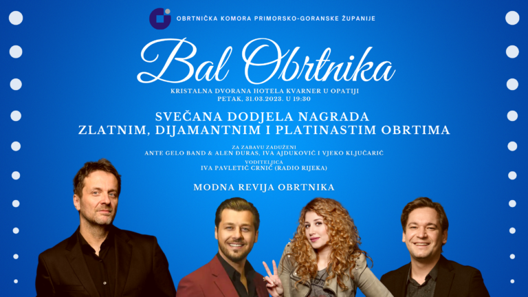 Drage obrtnice i obrtnici, Iznimna nam je čast pozvati Vas na Bal obrtnika Obrtničke komore Primorsko-goranske županije koji će se održati dana 31. ožujka 2023. godine u Kristalnoj dvorani hotela Kvarner u Opatij