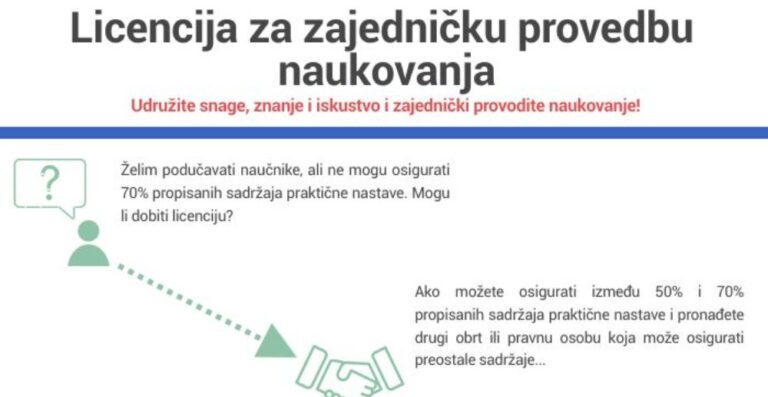 Postoji određen broj gospodarskih subjekata koji bi se željeli uključiti u provedbu naukovanja, odnosno primati učenike na praksu, no ne mogu dobiti dozvolu (licenciju) budući da u svom gospodarskom subjektu ne