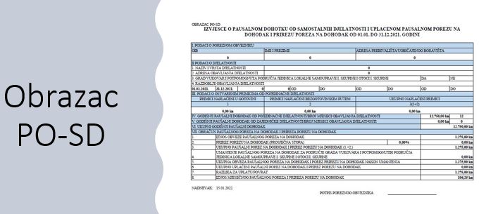 – godišnje izvješće o ostvarenom dohotku, na Obrascu PO-SD, za 2021. godinu potrebno je predati najkasnije do 15.01.2022. godine.