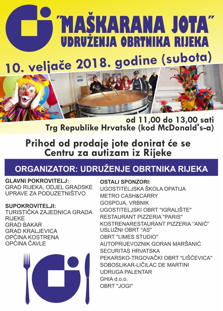 Udruženje obrtnika Rijeka već dvanaestu godinu za redom organizira humanitarnu manifestaciju „Maškarana jota“ koja će se održati