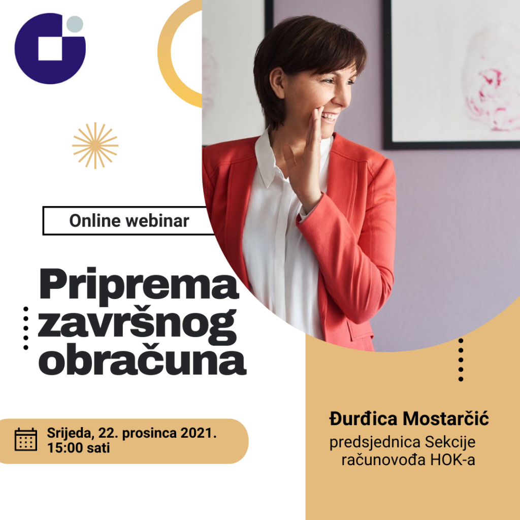 Pozivamo Vas na besplatni webinar o pripremi završnog obračuna za obrtnike paušaliste koji će održati predsjednica Sekcije računovođa Hrvatske obrtničke komore Đurđica Mostarčić.